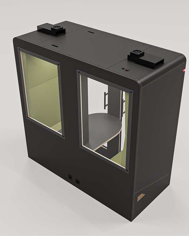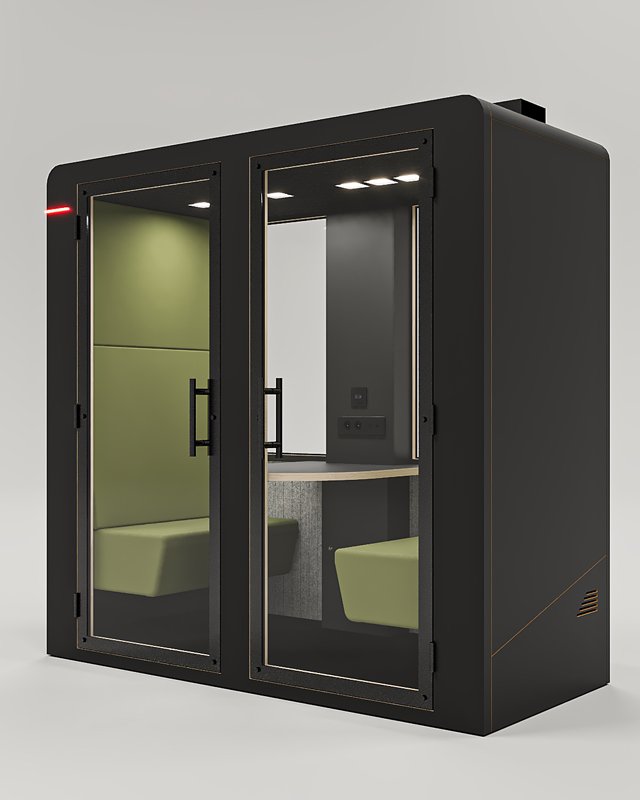 O Smart pod Duo New Khara é a solução perfeita para reuniões informais e sessões de trabalho privadas. Com seu design limpo e moderno e três cores sofisticadas – branco, preto e madeira, este Smart pod é a combinação perfeita de estilo e funcionalidade. A cabine Duo compacta e móvel.
